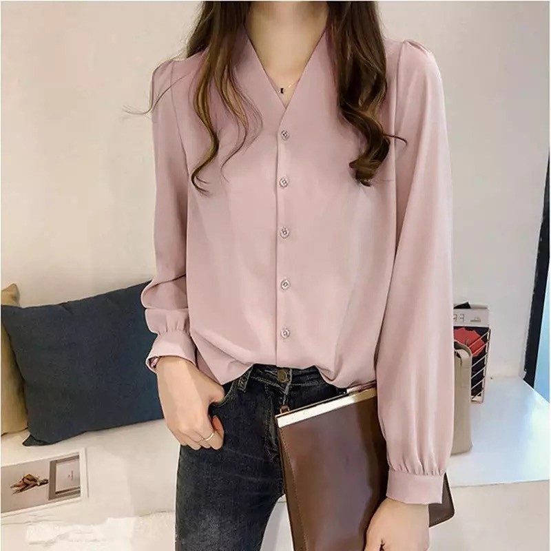 Model Baju Kemeja Wanita Lengan Panjang Polos RYN Fashion