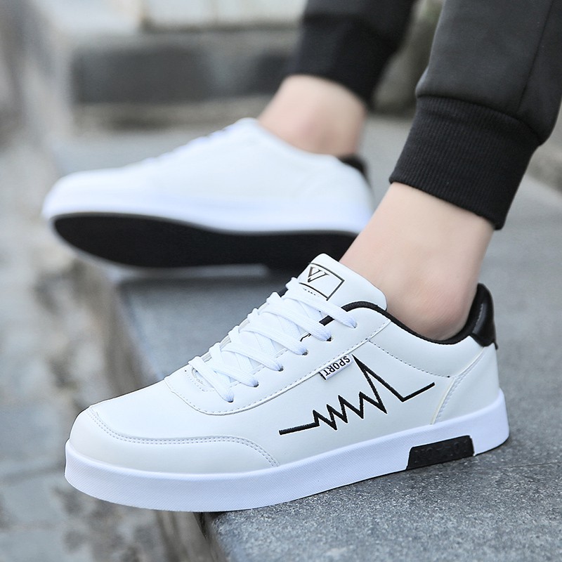 Jual Sepatu Sneakers Casual Pria Warna Putih Model Flat Gaya Sport