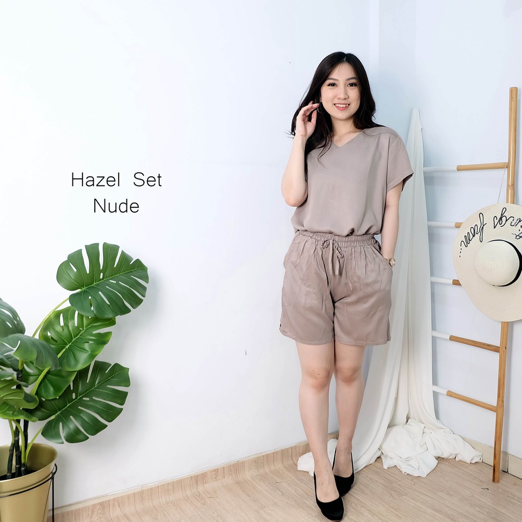 Hazel Set Setelan rayon Santai Celana Pendek Katun Fashion Wanita
